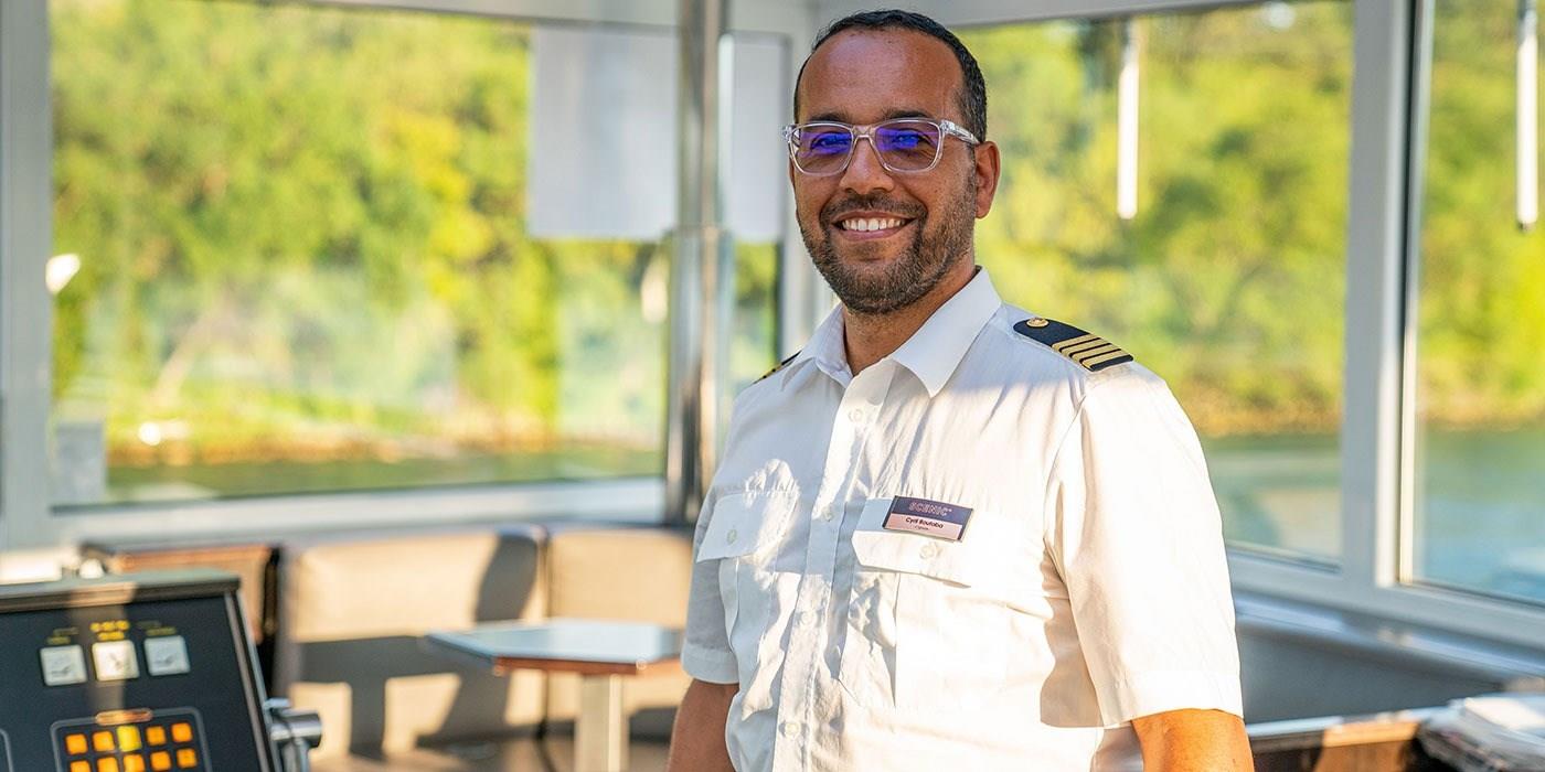 All Scenic Space-Ship Captains are selected for their knowledge of Europe’s rivers. Onboard, the Captain and their team can be found in the wheelhouse on the Sun Deck and will be on hand to greet guests and answer any questions during briefings.