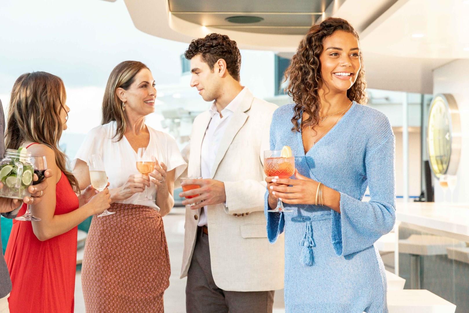 The Top Sail Lounge is the ultimate place to rest and relax after shore excursions or days at sea. Throughout the day, take in crystal-clear panoramic views of the ocean while enjoying crafted drinks, gourmet finger foods, and desserts. At night, relish in exclusive access to live music and after-dinner drinks.